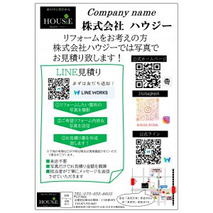 公式ラインのQRコードを読みとり、ともだち追加していただき、リフォーム箇所の写真と、リフォーム内容を送っていただくだけでお見積りさせていただきます!